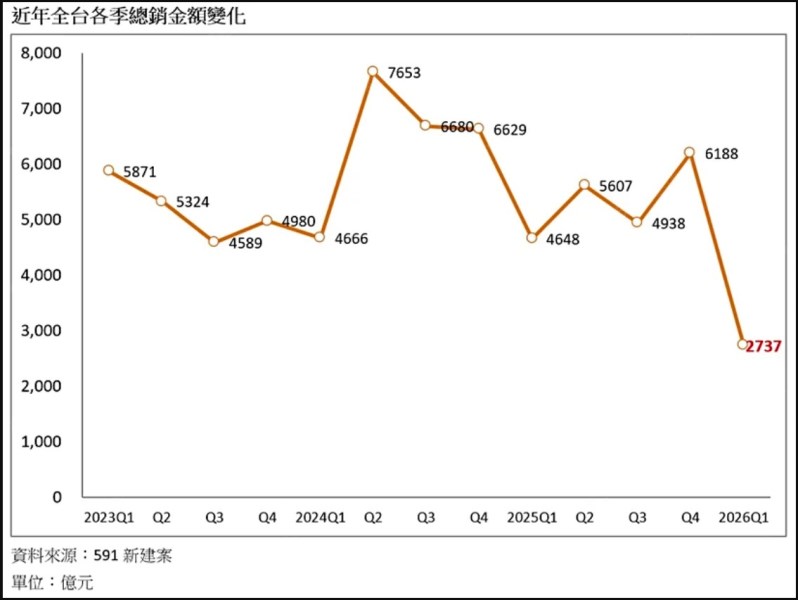 圖/首季總銷金額腰斬,創下單季新低(591新建案提供)